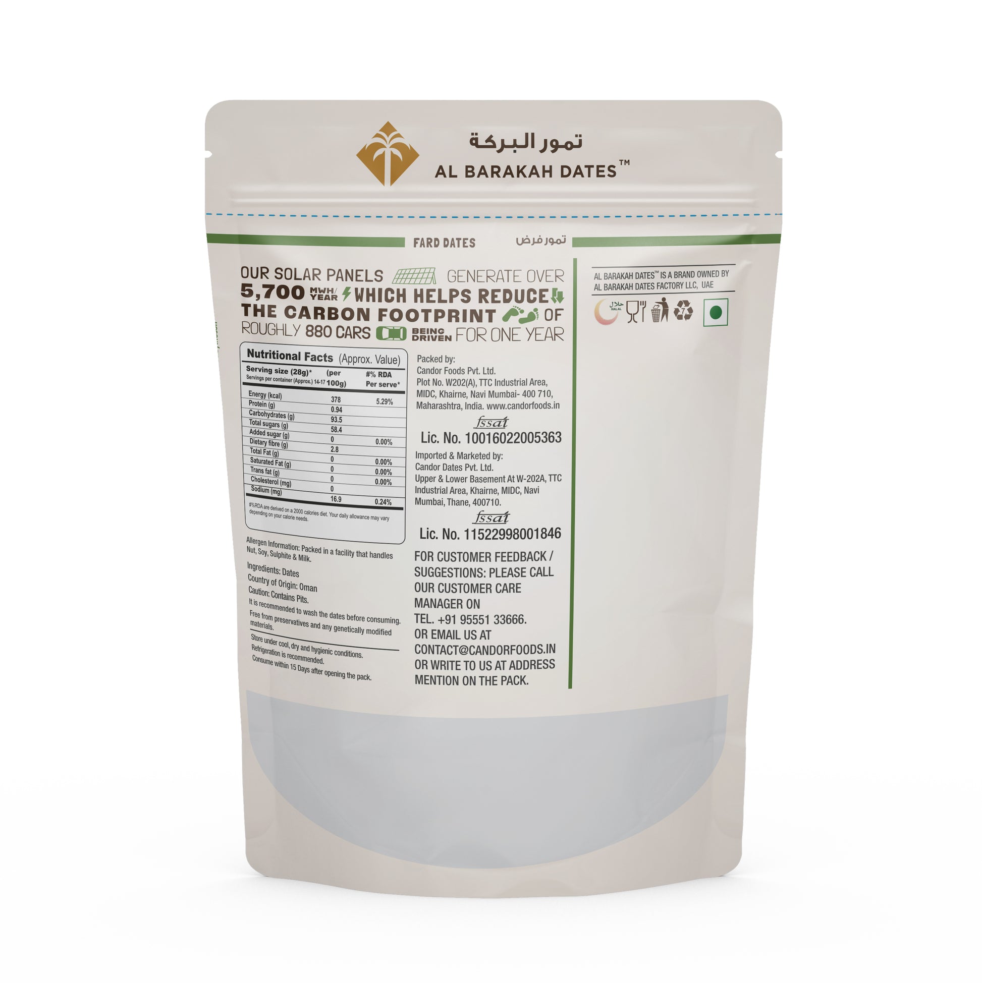 4. Storage instructions: Store Al Barakah Fard Dates in a Cool, Dry Place away from Direct Sunlight, in an Airtight Container or the Provided Resealable Packaging to Maintain their Freshness and Preserve their Softness and Flavor.