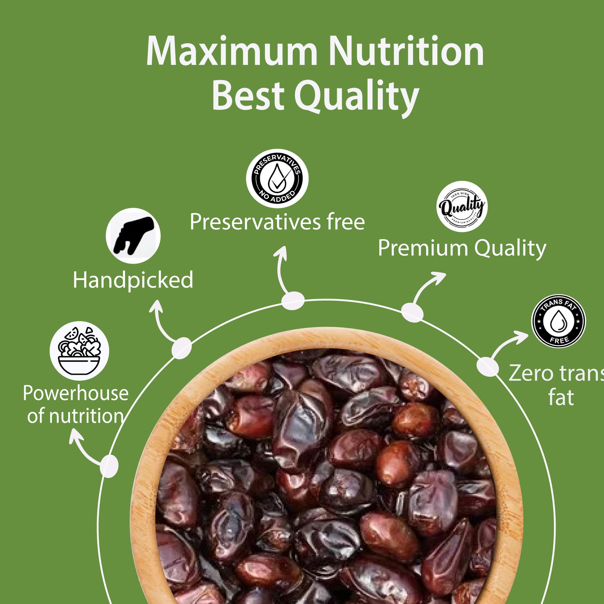 1. Attribute: Premium Quality Dates with a Distinctive Sweetness and Soft Texture, Sourced from Renowned Farms for Optimal Flavor and Quality.