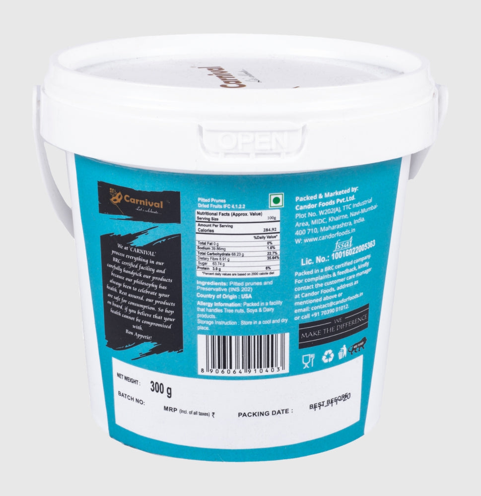 Storage Instructions: To maintain freshness, California Pitted Prunes should be stored in an airtight container in a cool, dry place. They can also be stored in the refrigerator for a longer shelf life.