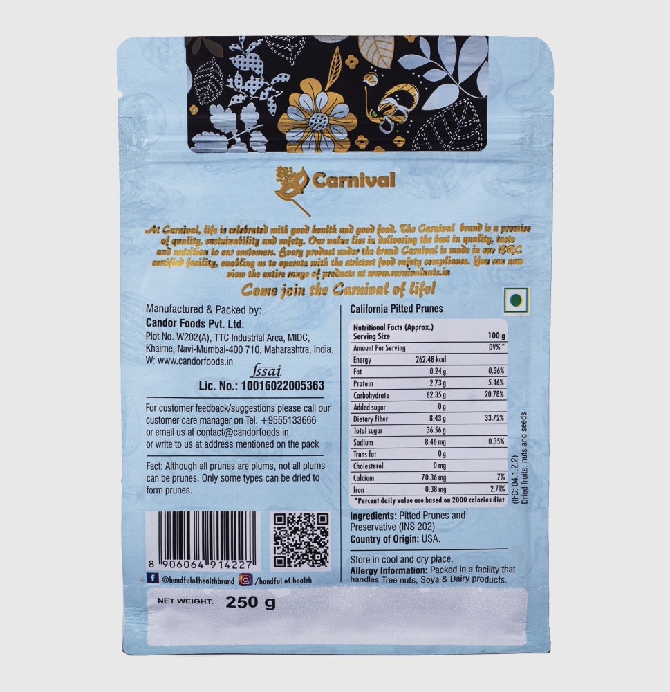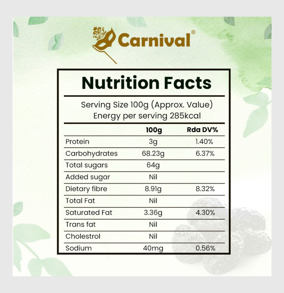 Carnival Pitted Prunes 250g | Shookha Aloobukhara| All Natural | 100% Natural| No Preservatives | Vegan | Alu bukhara | Aloo Bukharara | Dried Plum