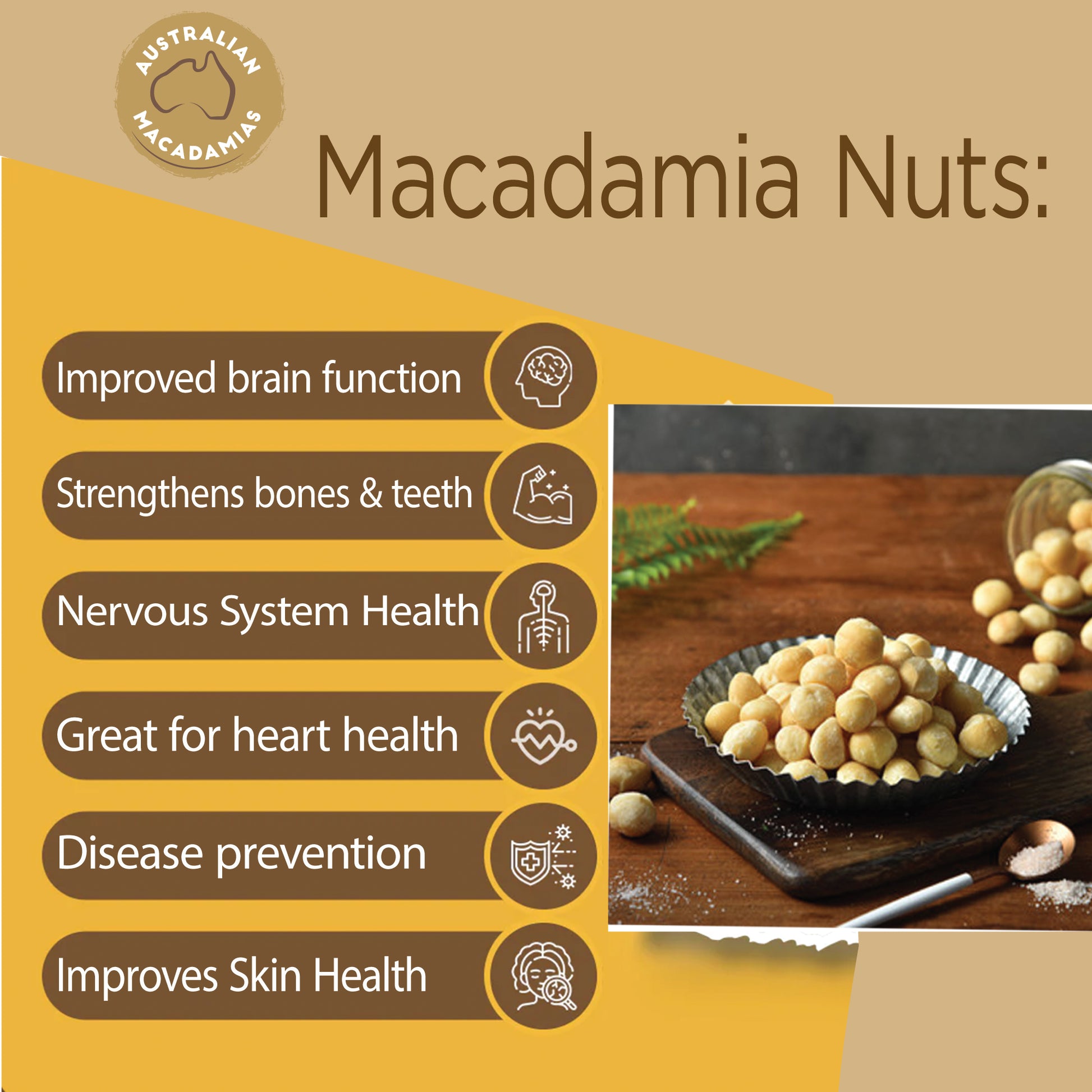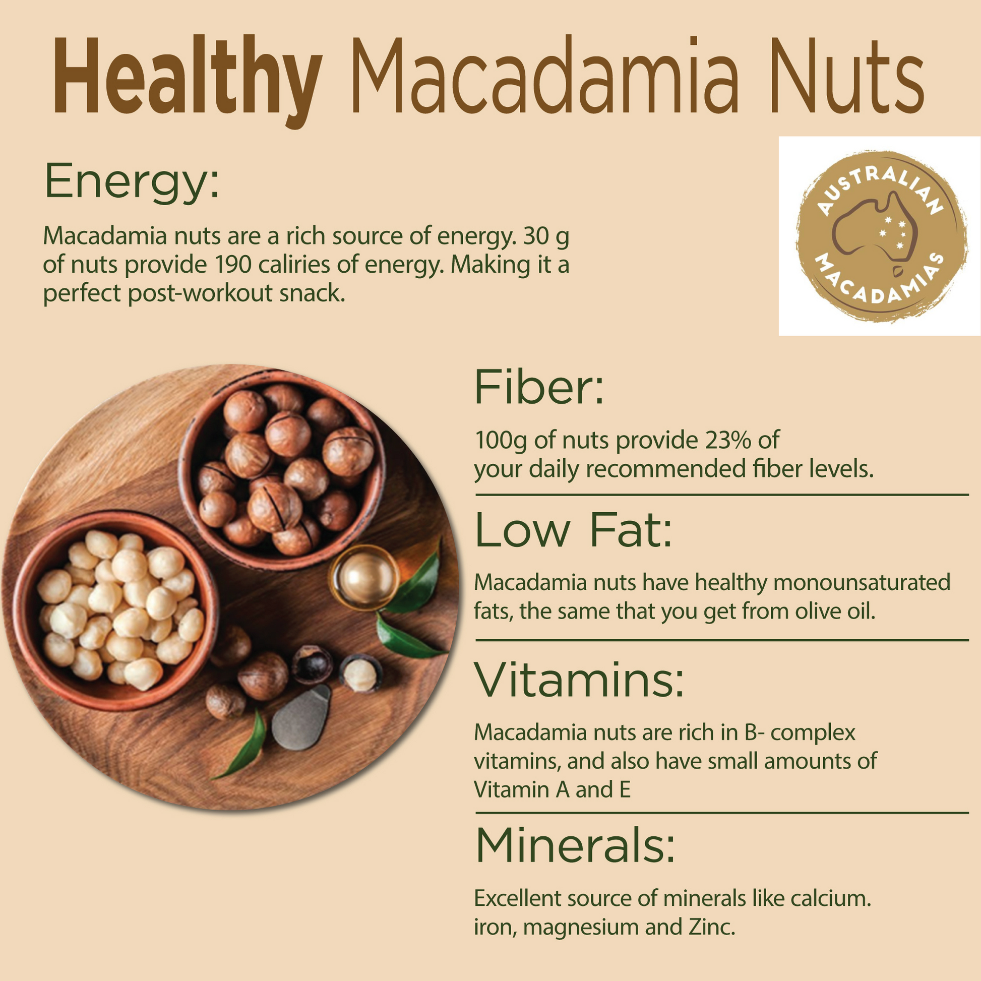 Premium quality macadamia nuts carefully sourced and roasted to perfection for a rich, buttery flavor.