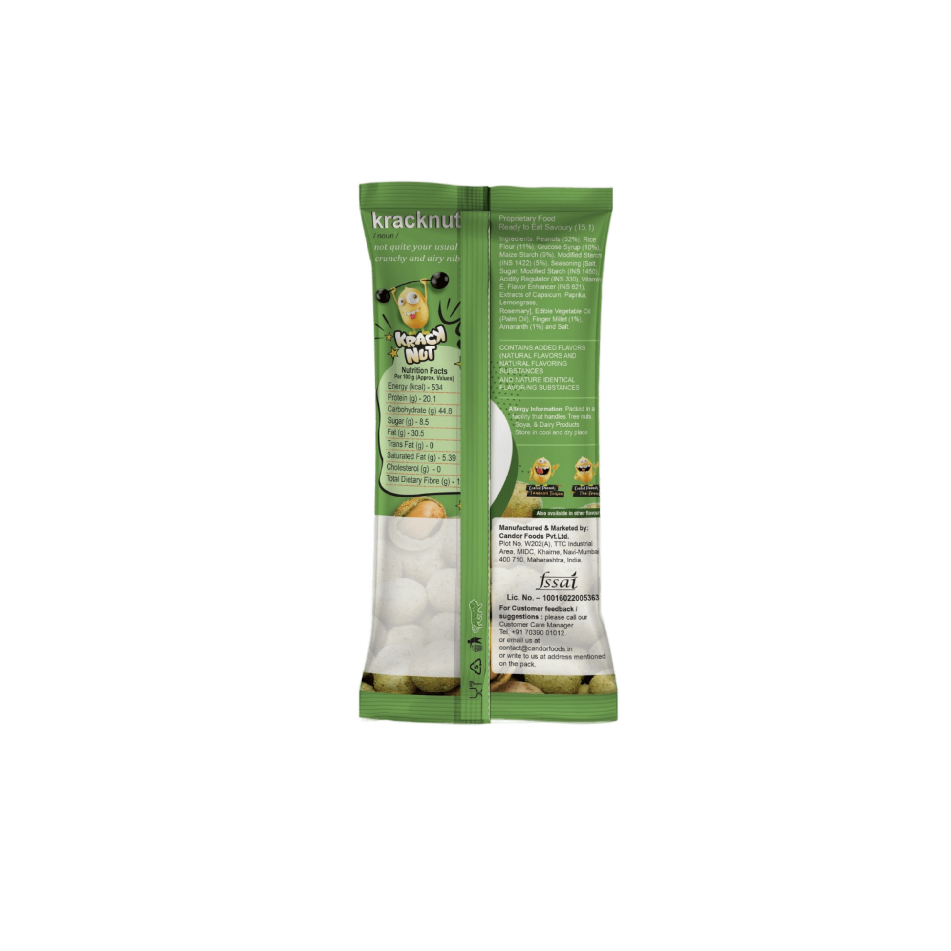 Kracknut Baked Coated Peanuts - Assorted Pack of 10 (25g x 10N) - Thai Firangi | Pudhina Pathaka Flavored crunchy coated peanuts | Healthy baked Indian Snack | Vegan |