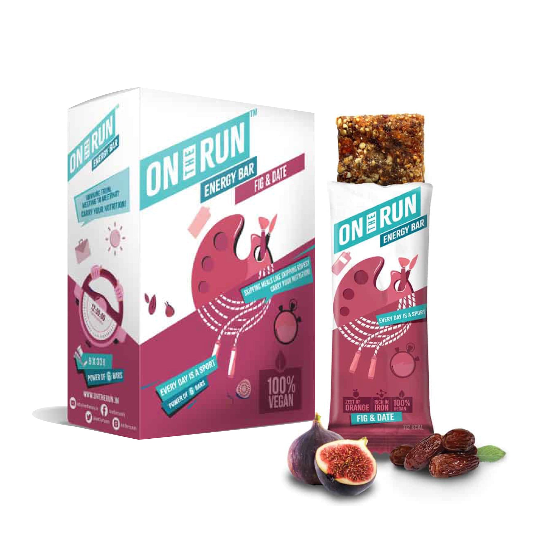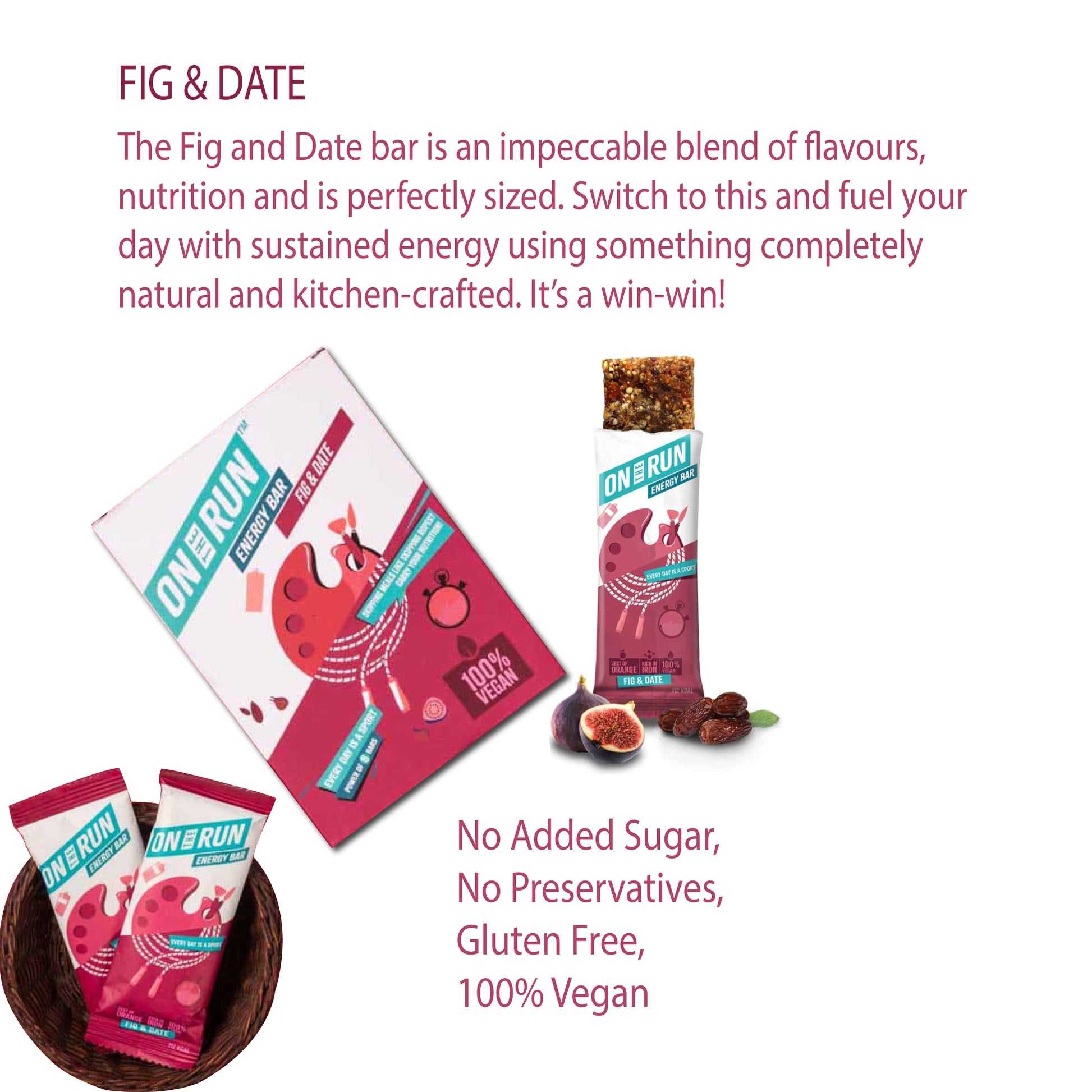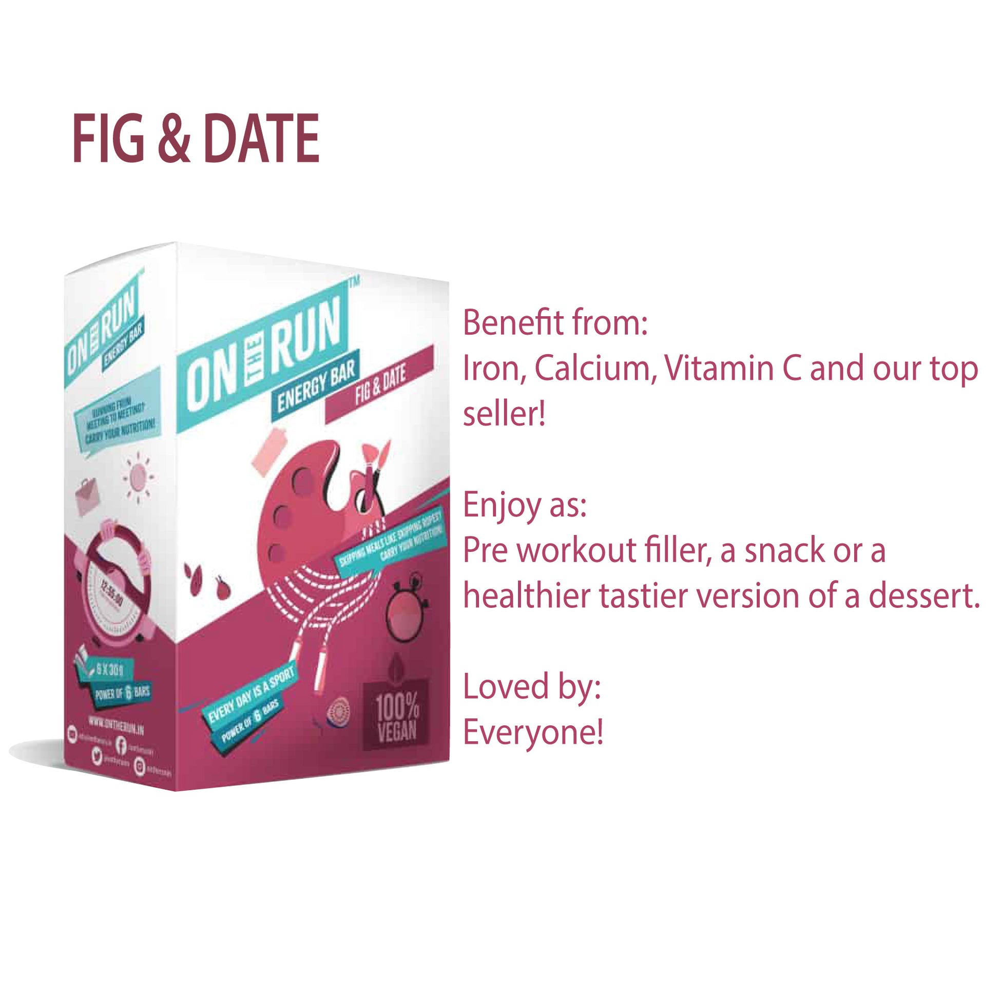 ON THE RUN Fig & Date Energy Bars ( Pack of 6 X 30g)