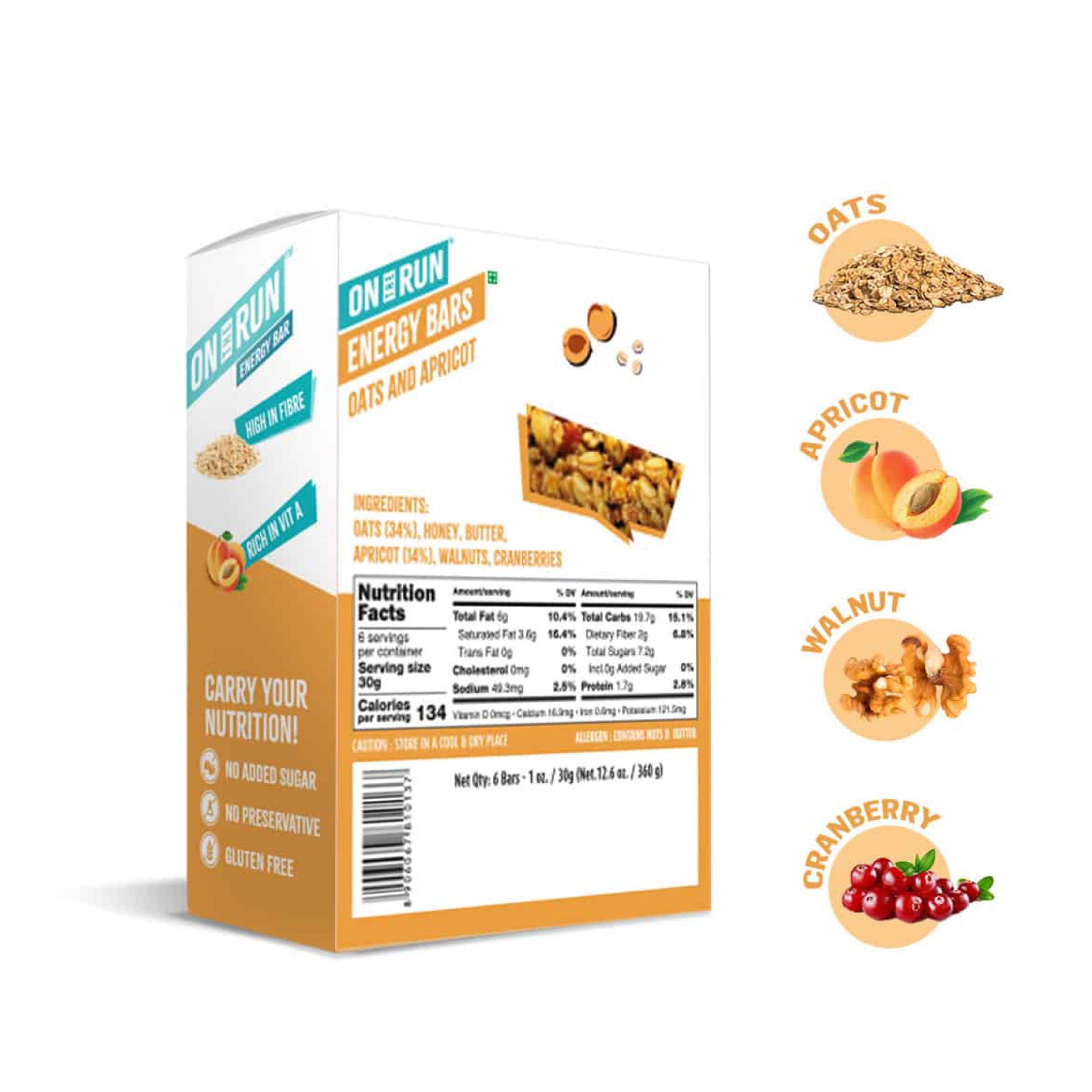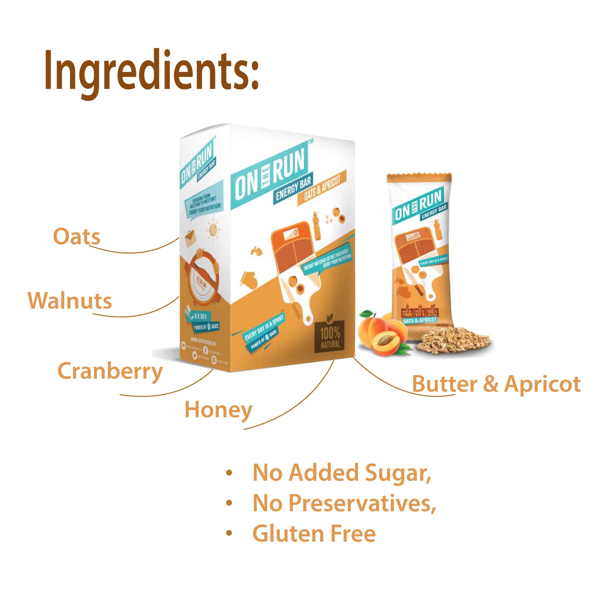 ON THE RUN Cranberry, Apricot & Oats, Energy Bars ( Pack of 6 X 30g)