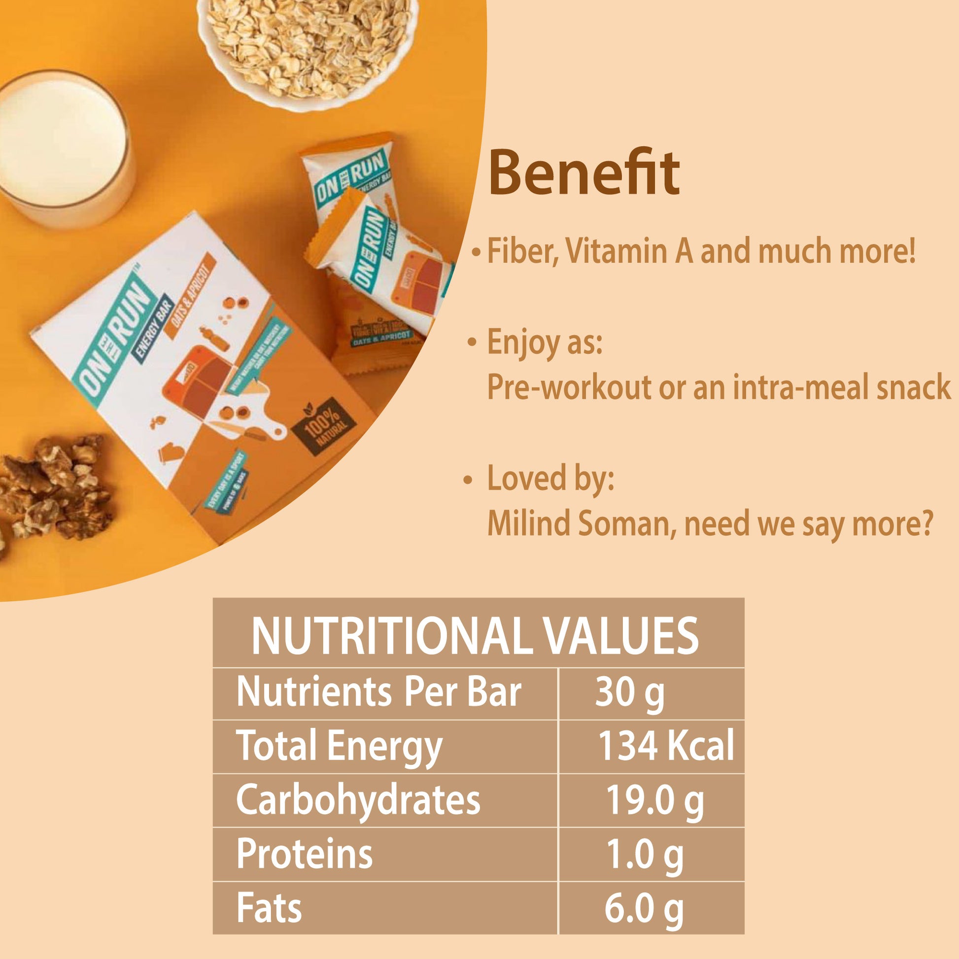 You can find 4 unique flavours at OnTheRun – Oats and Apricot Energy Bars, Fig & Date Vegan Bars, Choco Crunch Bars, Hazelnut Energy Bars and an Assorted Box containing all the flavours. Order our Energy Bars online and get delivery straight to your doorsteps.