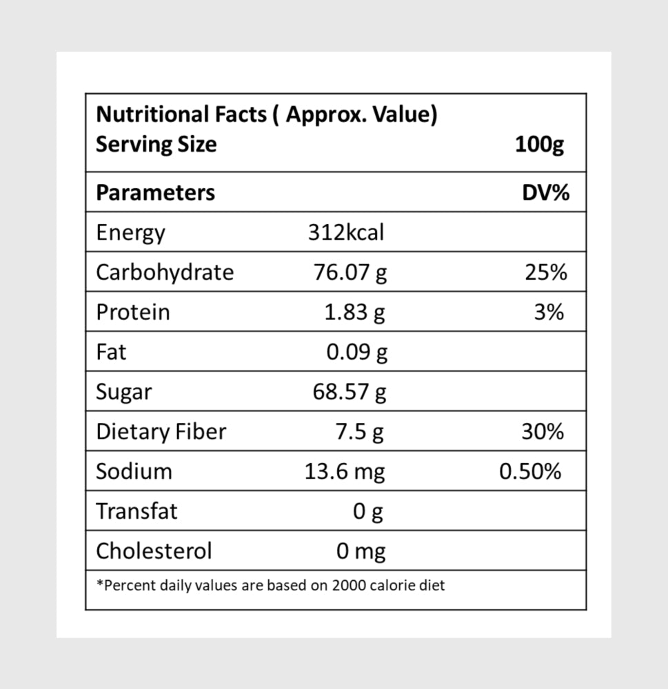 Attribute: These dates are dark brown with a soft texture and a unique, rich flavor.