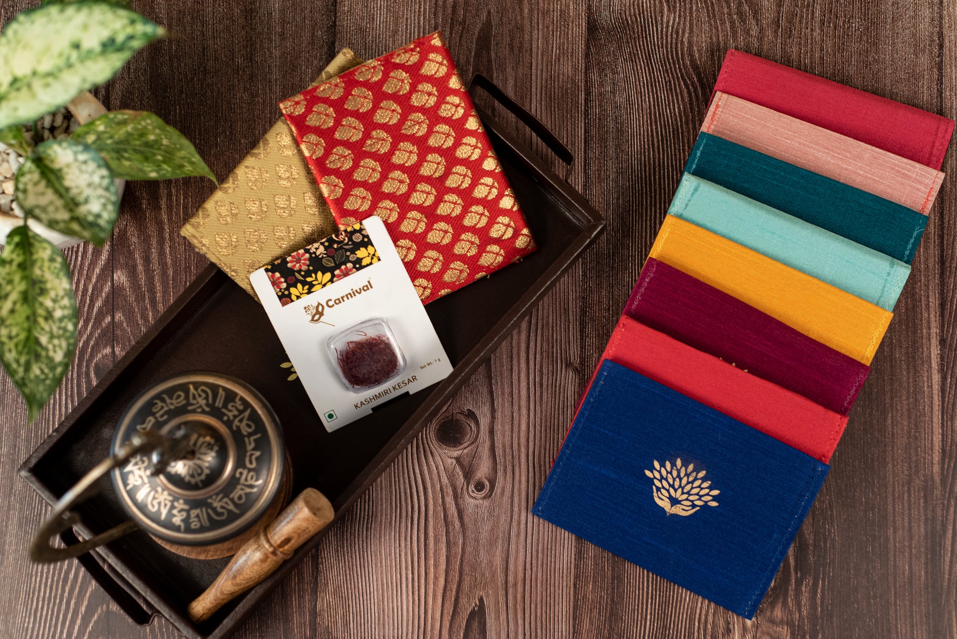 This beautiful silk brocade envelope encases a 1gm Carnival Kesar box. Sourced from the bountiful valleys of Kashmir this is an ideal gift for when you want to add flavour to your ceremonies. Comes in an array of beautiful colours. Lets make your celebration a colourful one!